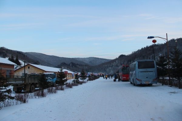 1月3日,6时多起来,准备完毕后来到街上,搭乘景区内免费的中巴车到哈尔滨方向的山门。8点不到就到了山门。等到8时,约好的司机王师傅准时来到。上车后一路下行,走到雪乡与雪谷的三岔路口时,路面已无积雪,车速也快了起来。约下午1时30左右到哈尔滨如家酒店中央大街店。