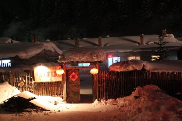 到了雪乡,天已擦黑。来到预订的农家,发现爆满。虽有铺位,但得拼炕。都不乐意,只有摸黑出去打探,经济的都爆满,只有破费了。找了一家差不多的,由于被这里的一个酒店收购了,要500元一间,还不含餐,交流了半天,才以300元一间谈妥,刚好行李也送来了,终于安顿了下来。