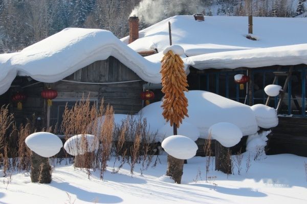雪乡不大,是一四面环山的山谷,从村头走到村尾也不过20分钟足矣。由于旅游的带动,吃住及玩雪项目很成熟。我们光顾着照相,雪地游玩项目的费用就不是很清楚了。在雪乡管委会的对面有个雪乡邮政所,可以寄寄明信片。