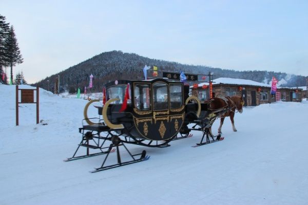 1月1日,今天是新年第一天,早早起来,发现天气很好。吃完早点,就开始了雪谷穿越之旅,门票75元每人。问了一下当地人,有没有请向导的必要,说是不需要,路很明确的,于是决定自己当自己的向导。8:20,进入雪谷,有马拉雪橇到第一休息站。我们徒步到第一休息站时接近10时。休息站要收费的,10元一个人。从这里开始,就要爬山了。我们沿着丛林中的雪路慢慢向上攀行,快至山顶时,还是感觉腹中有些许饥饿感。于是拿出准备好的红肠和列吧,稍微补充了点能量,喝了点随身携带的开水,又继续上行。约下午2时,到达山顶。当地的人叫这里为羊草山。这里的山顶休息站15元一个人,只送一杯咖啡,如果要续水,得5元一杯,什么世道。如果要照相的话,千万不要进去。我们一进去,相机立马变成水淋淋的了,镜头全糊住了,不能使用,在下山到双峰的途中,一张相也没照。
