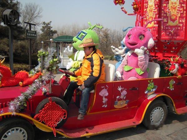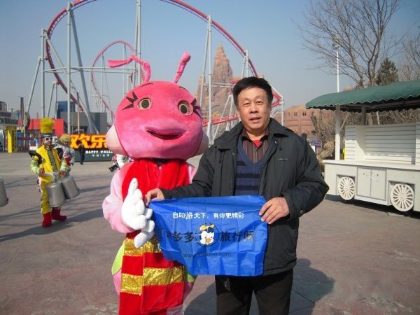 为庆祝小豹子生日,决定去欢乐谷玩,享受免费游欢乐谷的快乐。坐9路汽车经过天安门广场西侧路,因为开两会,这里是戒严的,由此想到,外地的朋友来北京市会受到某些不方便,开会期间不能进入天安门广场。在崇文门内换乘41路汽车直接到了欢乐谷。欢乐谷外有许多卖轻便旅游雨衣的人,5元2件,经过讨价,5元买了3件。雨衣是准备玩激流勇进防水穿的,我们去这天不巧,这个项目在维修,没有开放。进了欢乐谷大门,领取了导游图。