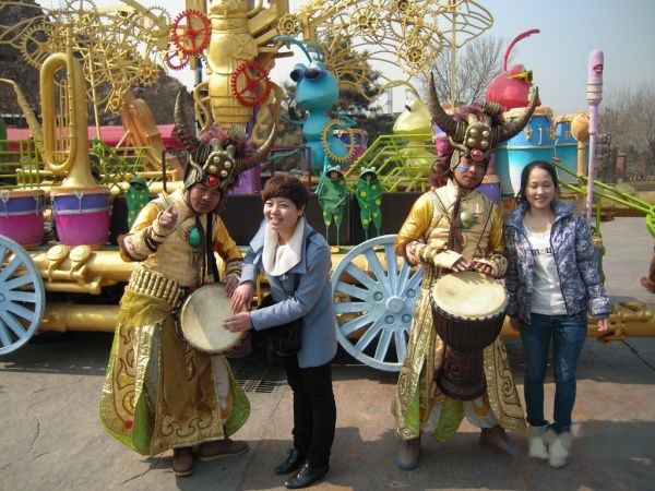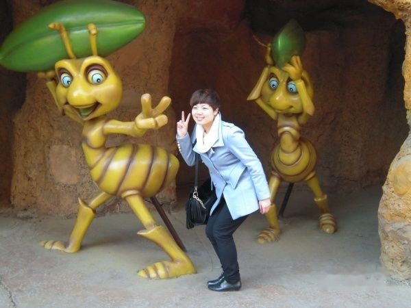 看见了卡通人物,与她们合影