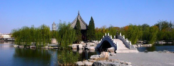 1907年开湖建园,名曰“鉴水轩”。1932年9月修建为公园,取诸葛武侯宁静致远之语,命