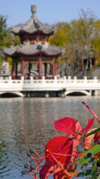连;造型各异的桥横架两岸;弯曲迥异的长廊将水池亭榭、楼台馆阁串连一体。