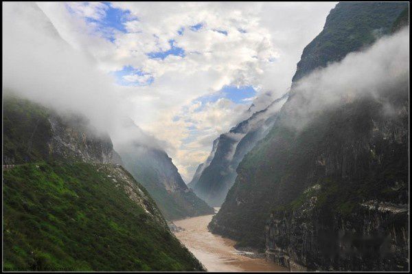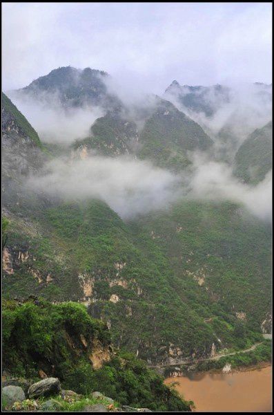 第二天(2012年8月8日)早早上路,赶到虎跳峡。其实虎跳峡镇离景区并不远,只有10公里左右。之所以早去,是因为去晚了,停车困难,还有那些旅行社带的团队都浩浩荡荡地来了,我们打个时间差。果然我们一路过去,路上很通畅,还未到景区,就在金沙江边上,被那岸边的迷雾迷倒。