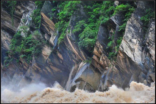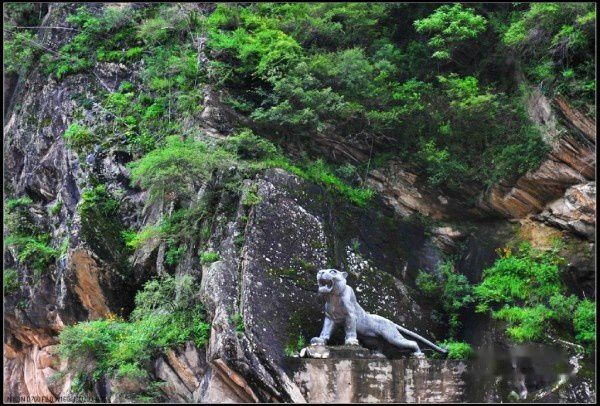 相传猛虎曾凭此石一跃过峡,因名之“虎跳石”。江水从巨石两侧拥挤扑跌而下,倒峡翻江,声震峡谷,虎吼雷鸣,惊心动魄。