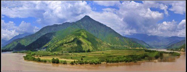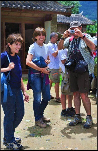 中午我们到达了丽江玉龙纳西族自治县的石鼓镇,将看到长江在这儿拐的第一个弯。话说万里长江从“世界屋脊”青藏高原奔腾而下,由滇西北进入云南,与澜沧江、怒江一起,一直并肩在横断山脉的高山深谷中穿行。偏偏到了石鼓镇,金沙江突然来了一个百多度的急转弯,由原来的由北向南前进,突然急转折向东北,形成了罕见的“V”字形奇观,被人们称为“万里长江第一湾”。金沙江从此掉头流向中原,孕育了长江文明,也对华夏文明产生了深远的影响。闻有诗云“江流到此成逆转,奔入中原壮大观”。午饭后,打听清楚观看第一湾的最佳位置,可以从镇口的那座小山爬上去,但是需要从农家院子里通过,这家主人叫施诚,是位60多岁的老人,开了一家旅馆,名为“长江第一湾全景最佳摄影点摄影之家”。电话:0888—5471392 13988819434.老人现在也是摄影高手。一般经他家小院过,收取10元/人,他见我们都是喜欢摄影的,就客气的让我们过去了。我们爬上江边的小山,拍下曾无数次听说的长江第一湾。