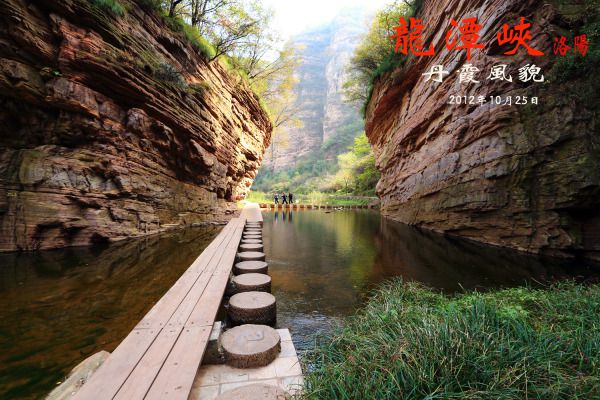 龙潭峡风景区,属于洛阳黛眉山国家地质公园的组成一部分,峡谷全长12KM。由紫红色的石英砂岩构成,拥有国内罕见的地质奇观。票价70元/人 ,65岁以上免票。从购票口到进景区的验票卡还有一段较长的路,客运汽车可以开进去,在此等候16点半返回市内。