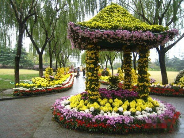 记忆中,菊花就是小黄菊那样。不外用菊花绑扎成行,神马小动物和一些标语。第一次去曲水园赏菊,发现原来菊花这么美!