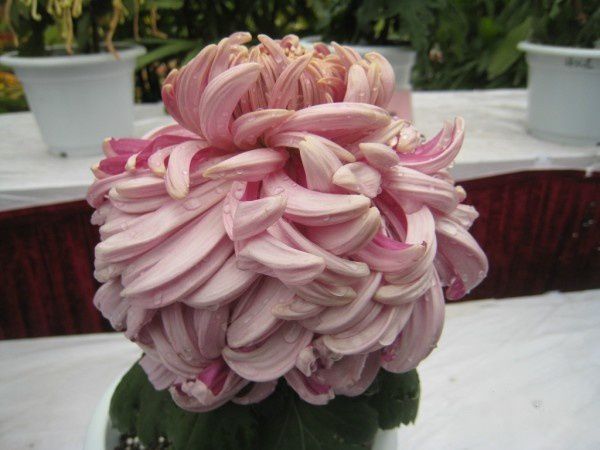 ![]() 墨王?估计牌子标错了,管他的反正好看哈 ![]() 巧堆腊雪 附:菊花常见引进品种来源 国华(kokka)——指日本大阪府和泉市的国华园。占日本观赏用的大菊品种约80%以上。 较出名的如厚物菊类有“国华名月”(黄色)、“国华鹤龟”(纯白色)、“国华月生吼”(黄桦色)、“国华创云”(白色)、“国华金创云”(黄色)、“国华皇帝”(黄锦色)、“国华青光”(浓黄色)、“国华辉煌”(深红色)等;管物菊类有“国华花百合”(樱色)、“国华山川”(雪白色)、“国华白穗”(纯白色)、“国华狭雾”(纯白色)等。 精兴(seiko)——指日本的精兴园。从2001年起精兴园就在中国申报菊花新品种权,例如“精兴之诚”、“精兴新年”、“精海”等5个菊花品种的新品种权,成为在我国申请菊花新品种保护数量最多的公司。 兼六(genroku)——指日本三大名园之一的兼六园。 骏河(suruga)——指日本古代令制国之一的骏河国,俗称骏河、骏州,即现在的日本静冈县。 泉乡(senkyou)——指日本温泉之乡。日本“泉乡”系列大部分是管物(管瓣)菊花,花径大、管瓣数多。 玉光园是位于名古屋的一家颇具名气的私人菊花研究企业。 圣光园是木更津市政府下的一家菊花生产研究企业,“圣光”系列菊花品种在日本全国菊花评比中屡次获得大奖,小菊品种丰富多彩。 另外,还有岸(kishi)、清见(shimi)、久米(kume)、越山(koeyama)、富士(fuji)——均为日本的姓氏或地名山名。如:岸的赤星、岸の赤星。