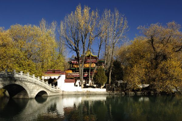 借用仓央嘉措情诗开头,在拉萨有很多建筑与他有关,最为出名是玛吉阿米餐吧(约会情人的地方),然而布达拉宫的后面,有个美丽的龙王潭,潭中心有座圆形的道,岛上有座玲珑精巧的亭阁,叫龙王阁。六世**仓央嘉措是位风流倜傥的活佛,也是才华横溢的诗人,在这有花有草,有湖有树,又有亭台楼阁的园林的龙王阁,经常和少男少女结伴,在这里唱歌跳舞、饮酒作乐。