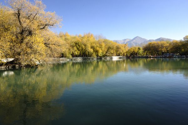 龙王潭仰望布达拉宫,遥想当年雪后清晨,留下一串仓央嘉措脚印,一直延伸到龙王阁,去约会他的情人。