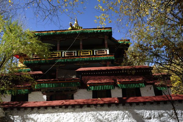 龙王阁是一座三层楼的亭阁式建筑,第一层供奉着龙王鲁旺杰波,据说是释迦牟尼的化身,佛祖化身龙王调伏众龙,估计这就是龙王潭的原因。