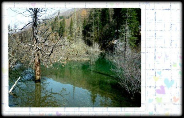 水中的树木快要枯竭了吧,在水面上泛着微紫而又孤独的光。它们或是三五成群,或是一枝独秀,见证着这片海子的繁衍变迁~~~
