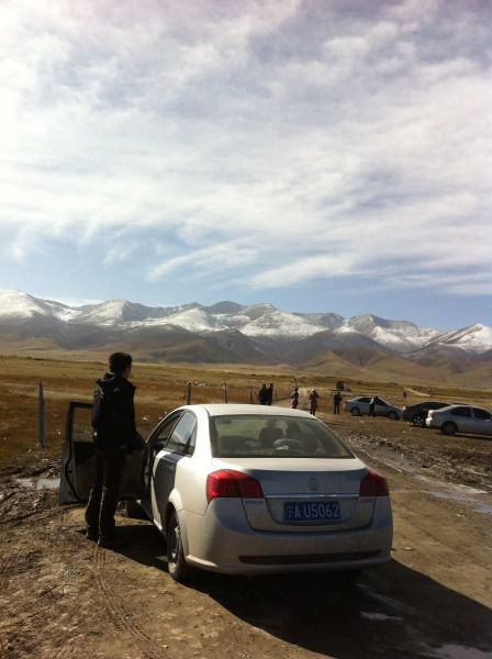 由于对丹霞心有不甘,又没起早床去看日出,于是想到另一个丹霞——肃南的冰沟丹霞去看看,看地图发现走这边也能到祁连,于是就走了这条路。结果……几乎全是石头路!在德令哈外星人遗址的那一小段石头路已经让我头疼不已,而这里的一百多公里全是那种路!开弓没有回头箭,没办法,只好以二三十公里的时速一路硬着头皮颠簸地走下去。大好的4个小时就浪费在了其实并不很长的这条路上,真是懊悔不已。幸好沿路的风景还算不错,还和雪山进行了亲密接触,极少见雪的广州同伴欣喜地说这是歪打正着,我则看成是一种惊喜和安慰。2点终于走出石头路看到国道时,我简直有亲吻我们的小别克凯越的冲动。一路上我最担心的就是车子出啥问题,这个小别克底盘很低,疑似石头擦到底盘的声音不时就会听到,大山里手机又都没了信号,如果车子出什么问题,后果可就太麻烦了。还好,小别克胜利地挺了过来。