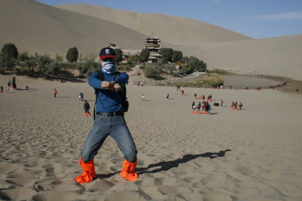 骆驼不会送你到山顶,最后一段山坡需要自己爬上去,因为很陡,沙子软得很,因此哪怕看上去只是短短的一小段路,爬上去却相当不易,到了最后,几乎爬五步路就要歇上一分钟。真的,如果美景来得太容易,也许记忆就不会太深刻。旅游为的不仅仅是看景,也在于旅和游的过程。