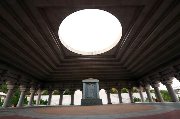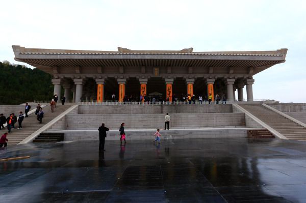 我将要离开黄帝陵了,天色有点沉,她催我赶紧上车。从黄帝陵有开往西安的客运汽车(50元/人)很多,我今天还打算不在西安宿,转车住华山。所以早早的节速了对黄帝的敬拜继续向南行。刚刚开出十多分钟的路程,老天就开始下小雨了。