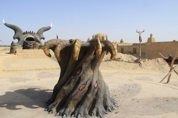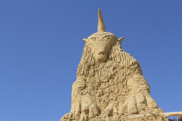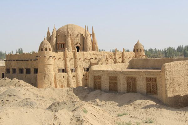 途中去了叶城正在复原修建的锡提亚迷城,据介绍“锡提亚”译成汉语是“不灭的悬崖”,始建于11世纪末,是喀喇汗王朝时期的可汗城,1218年在成吉思汗西征时被毁。在岁月的侵蚀下,如今古城已变成荒漠戈壁,被发现时满目的土坡和残垣,古钱币和陶器碎片遍地,城内随处可见人骨遗存。