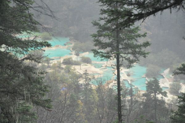 天不做美,没有阳光,五彩池的颜色变化不是很丰富.但有云雾笼罩着,也有另一番景色!