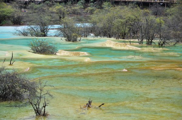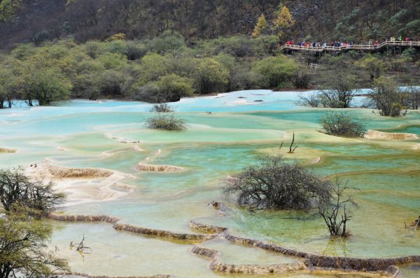 黄龙以规模宏大、类型繁多、结构奇巧、色彩丰艳的地表钙华景观而闻名,加上高山摩天、峡谷纵横、莽林苍苍、碧水荡荡,有“人间瑶池”之称。