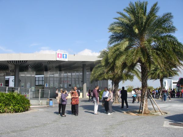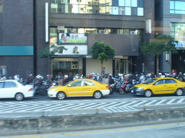 台湾的街道大多并不宽,房屋也比较旧,较低矮,新建筑不多,但环境干净、清爽,给人很舒适的感觉。交通也顺畅,高速公路很多,高架桥到处可见,车行速度很快,基本没遇见堵车现象,也看不见交警。骑摩托车的人很多,小汽车也都是中低档的。岛西岸两地之间全程都是高速连接,车很快就从一地到另一地,方便快捷。高速路的休息区很大,厕所标志非常显眼,标在屋顶上很远就看见,而且厕位也多,足有好几十个,根本不存在排队现象。厕所的屋角、墙上还有鲜花和装饰,显得很有品位。而且各地厕所名称也很有趣,称作化妆室。在高雄还看见一段普通砖墙上装饰有漂亮瓷花,很出人意料。