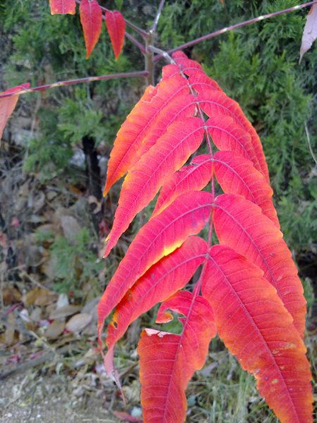 用手机拍了一枚红叶,绯红绯红的,颜色很夺目,如果漫山遍野都是这样的叶子该多好啊。