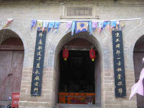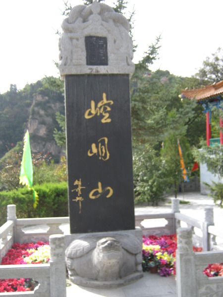 上山顶有两条路,可以从主道上去,然后从左边下来。我选择从左边上去,主道下来。左边小路景点很多,大都是古建筑,上行不远处有一石碣,上书“黄帝问道处”;再上,又见一宫殿,找名称,知道叫“四海龙君殿”,门两侧对联是“山??神灵到此必清必净,求福定有福就在五念立诚”。嘿嘿,那两个字没认出来,你填空吧,考考你的文字功力。上面不远又一宫殿,近处一看,叫“眼光殿”,还叫“三圣殿”,往上就一连串的宫殿,雷祖殿、就苦天尊火灵圣母殿、三星殿、玉皇殿、三官殿,到山顶又一“皇城灵官洞”,上书“敕赐崆峒”,是明熹宗亲题。