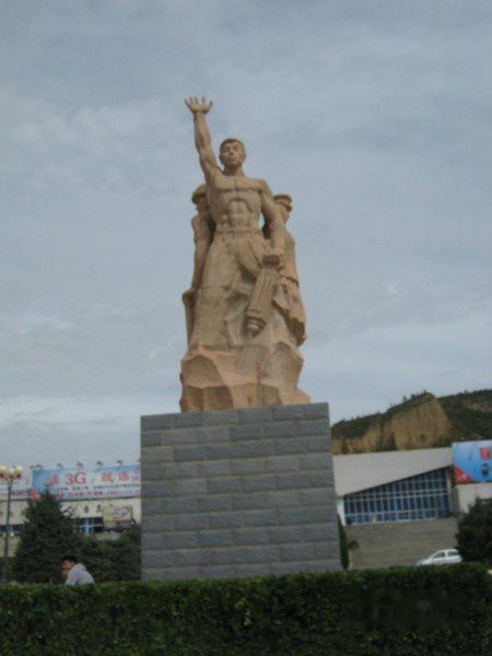 车到平凉,下了火车看到平凉站很小,不像一个地级大站的样子,出了站口,发现站台广场很小,因为车站建在山坡上,小广场上建一座雕塑,表现平凉人民的创造精神。
