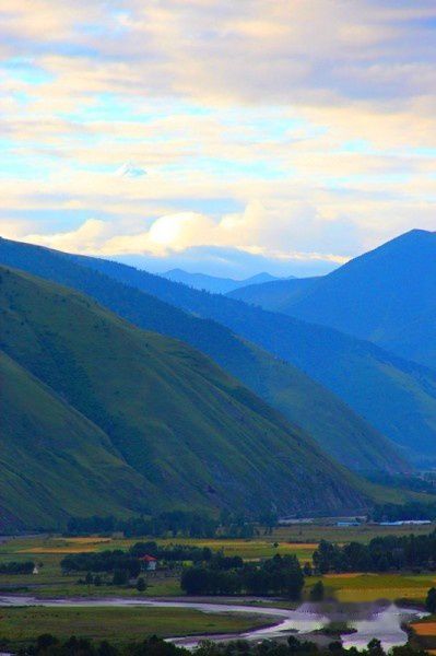由于要赶路,新都桥逗留时间短,这次有些遗憾,匆匆一过。第二天早8点在客栈吃过早餐前往塔公,藏家人推荐我们走一条没有多少人知道的路前往塔公,据说风景绝美。出客栈往左往康定方向回走10KM有条岔路往左进入河滩,沿河滩一路前行到达塔公,由于多云天空的颜色没有显现,沿路风景还算可以。