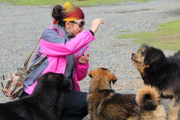 到达塔公,到处都是藏民牵着马,又脏又乱的。完全没有兴趣进入寺庙内了。草地上懒懒的躺着几群藏狗,由于藏族人对狗很友善,所以虽为流浪狗性格比内地的狗温顺很多,拿出早就为狗狗们准备的火腿肠让它们美美吃上一顿,其中一条黑色的狗狗,眼睛完全是青花瓷的蓝色,从来没有遇见过,真的很美,可惜没有拍到它的眼睛。
