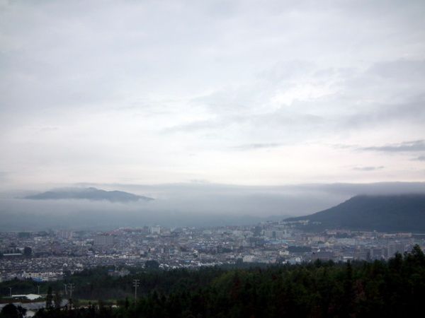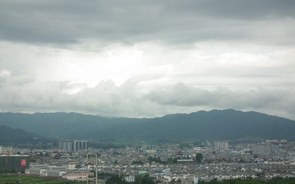 腾冲是个不大的县城。我们住在西北角的世纪城小区,从住宿的楼上可以看到整个县城城区。