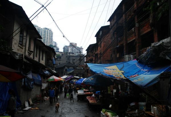 老街道。与重庆CBD中央商务区仅一条马路相隔,但其落后的程度至少相差30年 。