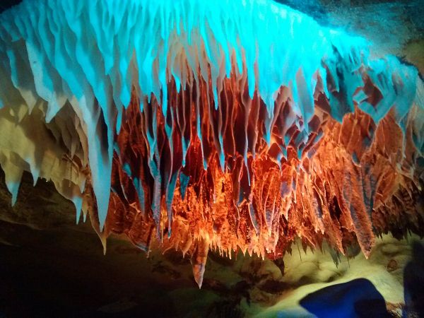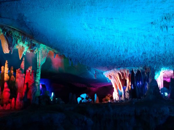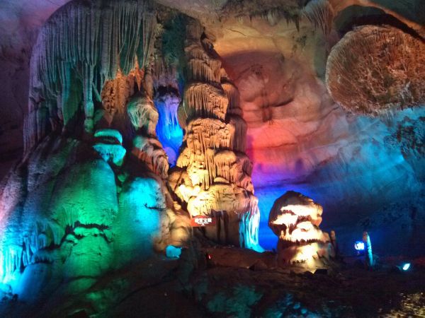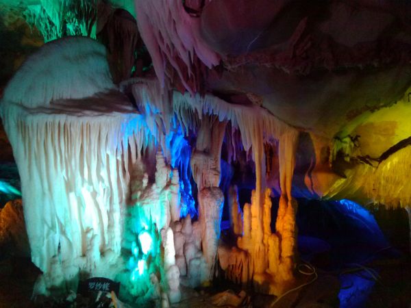 石台是一个四面环山的小县城,周边有很多景点:大王洞,蓬莱仙洞,百丈崖,秋浦河,牯牛降,仙寓山等等。向当地人打听后,得知石台有去每个景点的公交车,等了近20分钟没来,于是在路边找了一辆拉客的电动三轮车,花了20软妹币到了蓬莱仙洞。门票80,用学生证半价,全程走完花了2个半小时,洞内比较凉爽,空气很潮湿,走完一圈也很消耗体力。