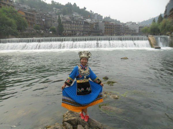第二天,跟团游玩苗王城一天,坐在客栈外面等待时,臭美的多照几张照片,好让这美好时光和美景记录下来。