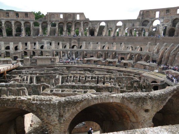 今天是罗马pass最后使用的期限,我们坐车到古罗马竞技场,拿着pass招摇着,免去排队之苦直接进入,pass总算有了一次用武之地。古罗马竞技场——公元前80年建成的雄伟的拱形建筑堪称建筑的典范。竞技场设计了宽敞的阶梯和走廊,并设计了80个拱门,在每一个拱门的入口处都标有数字,方便观众很快找到自己的座位,让5万人在10分钟内进入剧场。这样的设计即使在今天也很先进。竞技场的功能性设计也非常合理,角斗士的出入、休息,猛兽的暂居以及死伤者的处理等都细密周详。