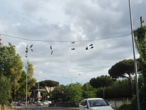 走出亚庇古道,抬头看见马路上方高高的电线上挂满了鞋子,这景象从未见过,我好生纳闷:这是哪门子的行为艺术?亚庇古道、被吊死的鬼魂、挂满的鞋子,难道这里面有着某种联系?可惜,这里没有一个行人,不然我肯定要逮住一个问个究竟。