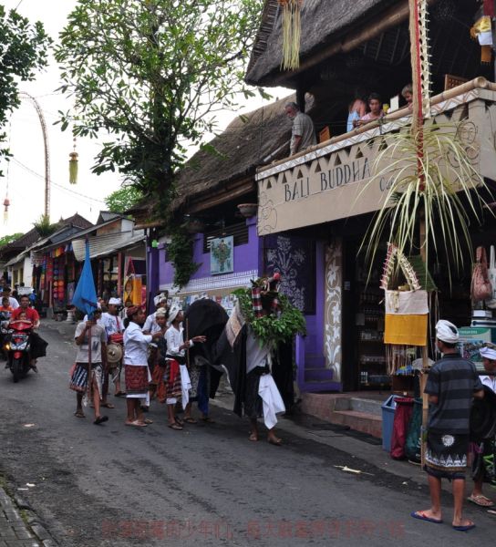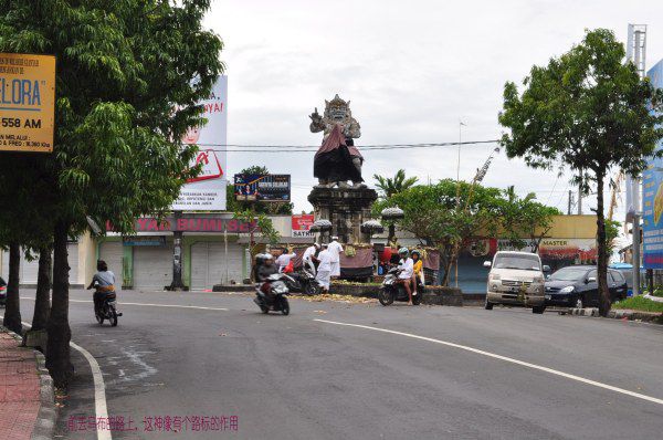之后回程路上我欣喜的发现居然掌握了下坡后冲上下一个坡的方法,盛喜,好似上天同意让你年轻了10岁一般。比之昨日不知快了多少,很快转出山区经过库塔市区边时方被参加节日的人群所阻,回到登巴萨吃饭休息,又被门口的锣鼓声所扰,警察刚刚警戒了这条大路,让一群抬着一顶高轿的庆祝队伍通往西部。我总也没看清轿子里坐着谁。反正不是人。