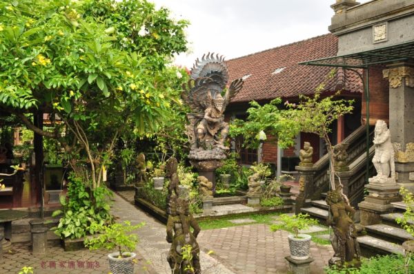 这里的环境清新很多,各种路招让你顿觉方便很多。我在一条起伏的长巷中找到一间民房,同女主人made(马蒂)友好协商终以210千三晚的价格拿下带热水的大房子,差不多50元人民币一天。太爽,现在是淡季,一切可以商量,此房坐落在她80岁父亲的家族里最后面的一座二楼的楼下,直接面对后面茂密的丛林。老父亲身体健壮,常常巡视这个院子,他的儿子们有的在家作木雕,成熟的公鸡一律关在单独的笼子里。房间顶面进出着壁虎替我吃蚊子,不时嘎嘎欢叫,太舒畅了比之登巴萨妙的多了。当晚去超市采购发现物价也低了。
