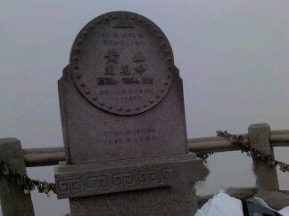 突然不晓得应该怎么衔接了。。反正总之一句话,下山的路非常险,非常的陡,右边扶手是山壁,左边就是人工堆起的一道水泥墙,有得地方水泥墙的高度连只到人的膝盖。而且风力还比鳌鱼峰顶下来的地方强很多,人不扶着东西根本就站不稳。而且当时天还没亮,周围都是白茫茫的云雾,如果不是在山顶遇到一对母女跟我一起走,我很可能趴在那里都不敢动了!莲花峰峰顶多么有意义而值得拍照留念的一刻啊,但是不要说找人帮我拍照,上面几张破烂照片我都是鼓起巨大的勇气才从劲风中掏啊掏,掏啊掏才从包里掏出来的。然后就是,基本上,下山的路我们一行(特别是女的)都是仰趴这手脚并用地爬下去的,这是我这辈子第一次处在这么危险的环境。