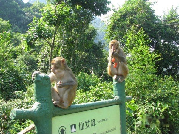 景区里的猴子们在节日里每天都过得很悠哉。因游人络绎,逗猴、喂猴的较多,猴子们现在可跩可会挑食了。往常是猴子们追着游客跑,现在是游客们双手捧着猴食料奉送给它们,而猴子们对平素最爱吃的花生不理不睬,甚至拍掉一旁,只吃小面包、饼干(另景区不允许喂香蕉,因猴子们吃了会拉肚子,在进入景区前就被收缴或在喂食时被工作人员阻止)。在早上猴子较多,而下午猴子们吃饱后就不见踪影了。坐船游绿水江时,号称“水军”的猴子们更是难觅踪影,不抛出小面包到水上,难以看到它们倒挂金钩的身影。