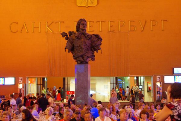 圣彼得堡“莫斯科火车站”候车大厅里的彼得大帝塑像。