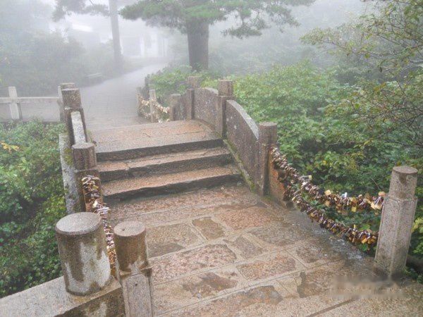 最后经飞来石,登群峰顶,到光明顶,之后来到第二天的住宿点,白云宾馆。放下行李,出宾馆右转,目标:步仙桥。