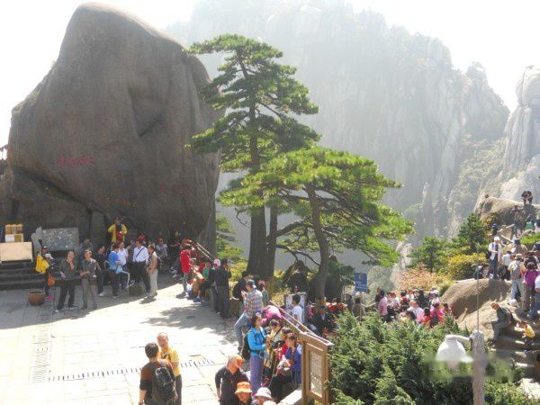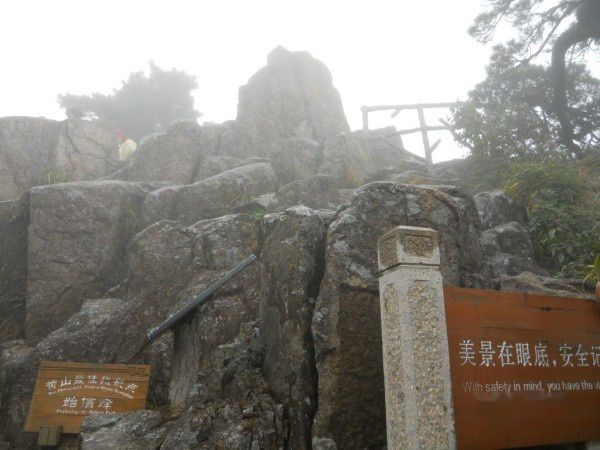 仙人翻桌—仙人指路—双猫捕鼠—白鹅岭(到此总共7km)—黑虎松—竖琴松—探海松--始信峰(由于大雾,辛苦登山始信峰,结果一片大雾,什么都看不见。遗憾!)