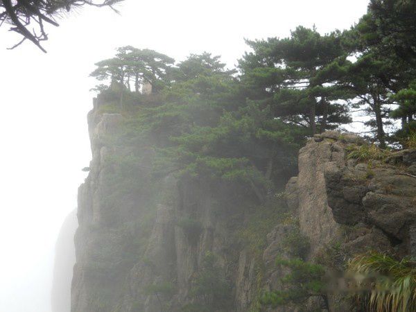 始信峰—妙笔生花—团结松--西海饭店—排云楼宾馆(因为从始信峰下山已经15:00及能见度太低,丹霞峰和狮子峰只得作罢)。