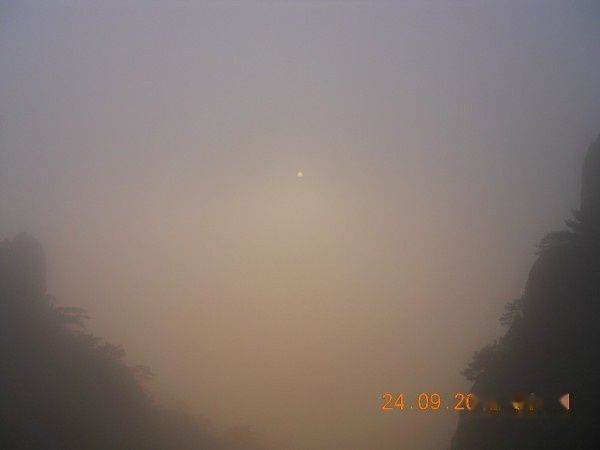 早上5点起床,直接往光明顶旁的炼丹峰。其实炼丹峰比光明顶更适合看日出。炼丹峰方向是日出的方向嘛。由于大雾久久不散,太阳升的时候那一刹那被大雾给遮去了。但是太阳的美丽姿色却永远是那么光亮,耀眼。