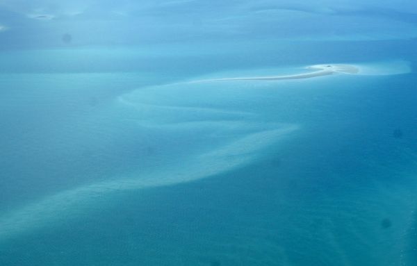 飞机跑道贯通小岛南北,岛周围都是珊瑚礁。