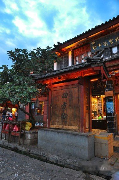 到丽江一定会去四方街的,应该是比较有代表性的一条街道吧,离大水车很近。四方街比较小,人很多。比较喧杂,商铺比较多。四方街上的一个邮局,营业时间到晚上9点。最开心的是,想问一个漂亮MM 买一张明信片,她说她买多了,送我一张。