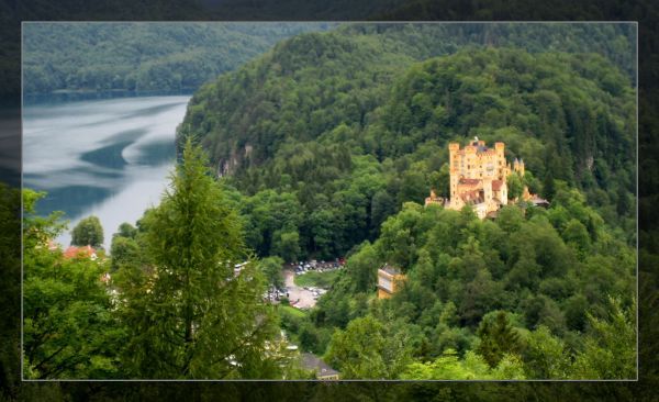 像所有的古堡一样,室内光线总是暗暗的,更喜欢每每穿过厅堂时,突然闪现在窗外的那一小幅美景---最美的风景,原来在窗外!从加冕堂的阳台上看出去,视野超好,左边是清澈的阿尔卑斯湖,右边是小小的天鹅湖。两湖之间是旧天鹅堡,黄色的城堡从层层绿树中跳脱出来,和周遭的湖光山色搭配在一起,锦绣河山,天上人间。