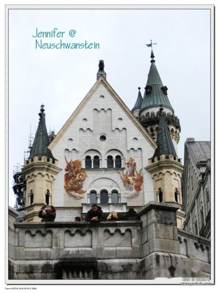站在院子里,近距离地看城堡,不知是维护得好,还是城堡本身年代就不久远,天鹅堡没有一般古堡的沧桑感,墙面洁白,壁画的颜色鲜艳,好像昨天才刚刚完工。深感“距离才是美”!其实,新天鹅堡更适合远观。走近了,像看清了粉妆下美女的真面目,让人后悔不迭。