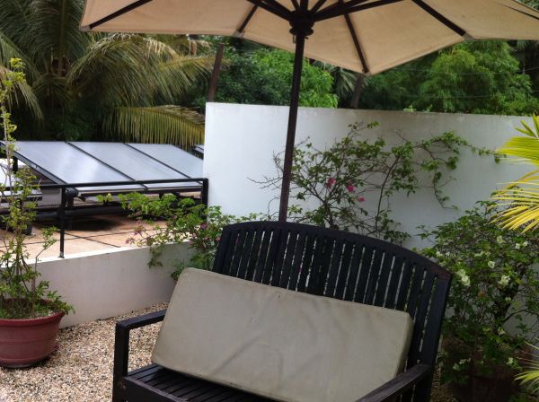 房间外面有个小阳台,本想着闲时可以坐那里休息休息,But,白天一会太阳一会儿雨的,晚上又太多虫子,没有怎么使用这个小阳台。